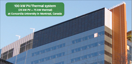 PVT systems harbour great potential for a variety of uses. The photo shows the PVT facade on a building of the Concordia University in Montreal, Canada.