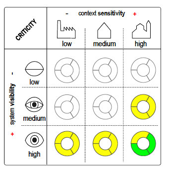 The Criticity grid specifies the sensitivity of the urban context and the visibility of the surface in the public realm, including quality requirement symbols. - Source: LESO/EPFL