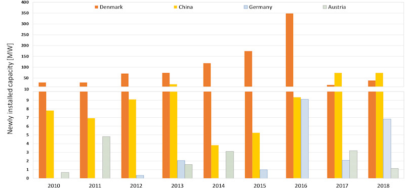 Regarding Denmark, Austria and Germany, the market overview was set up using available data. In the case of China, however, new data had to be collected. Supported by several Chinese organizations, the paper authors therefore requested information from China’s major suppliers and identified a total of 55 large solar thermal systems.
