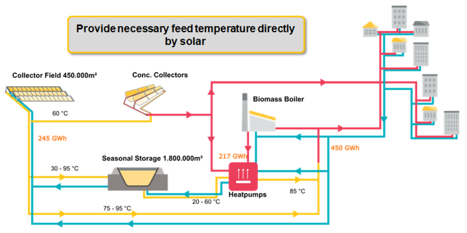 - Provide efficiently generated solar heat to meet the needs of current district heating systems running at medium to high temperatures