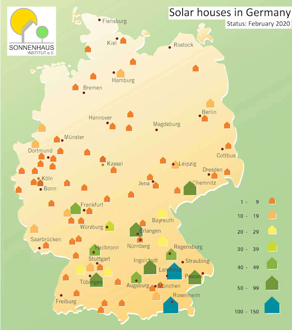 In its latest annual report, published at the end of 2019, the alliance’s co-chair, Georg Dasch, described a number of key market trends. For example, single-family homes made up the bulk of largely solar-heated houses for years, before the concept has been now shifted towards multi-family houses and industrial facilities. In addition, he noted that a number of solar houses can now also be found in the northern regions of Germany, at latitudes that come with lower irradiation levels. The country’s northernmost solar home has been put up in Kiel on the Baltic Sea coast (see the map above).