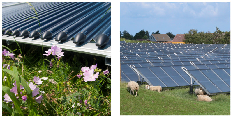 Biodiversity below large solar collector fields either with flowering meadow or as sheep runs Photo: Guido Broer / Erik Christensen