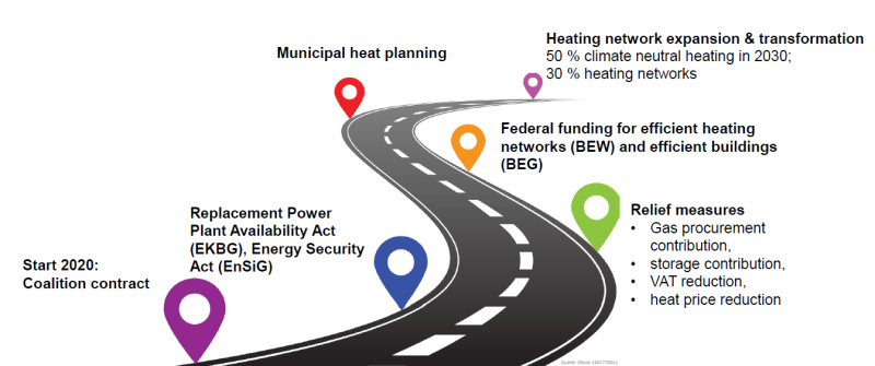 The Local Heat Planning Law also sets national targets for the decarbonization of heating networks. From 1 January 2024, at least 65 % renewable heat must be fed into every new heating network. By 2030, half of district heat is to be generated in a climate-neutral way.