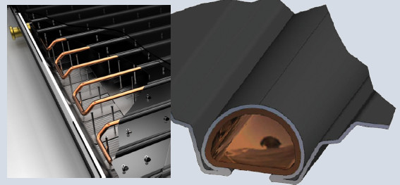 Patented mechanical connection between the copper tube and the absorber sheet of Thermosolar collectors