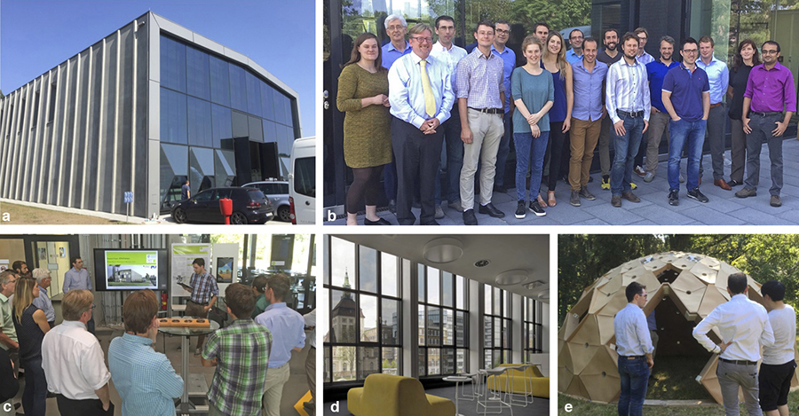 A general introduction of Task 56 was given by the Operating Agent Roberto Fedrizzi. The Subtask leaders went through the workplan and the progress was identified in presentations together with the experts. The meeting included a lab tour, where Dipl.-Ing Andreas Maier guided through ETA Factory "The energy efficient model factory of the future" (a,c). A PhD project by Wang Xiang was visted at the Campus of TU Darmstadt (e). At the end of the meeting, Jasper van den Muijsenberg by Merck Window Technologies, organized a visit to their premises near Darmstadt for a demonstration of their Liquid Crystal Window Technology (d).