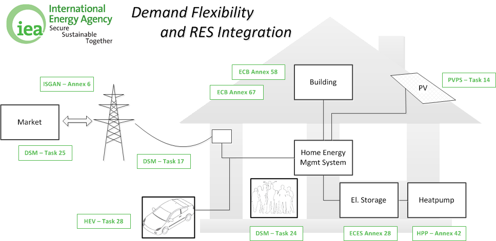 Demand side flexibility is needed in order to effectively integrate renewables and distributed generation in the future energy system. The enabling of flexibility involves many different aspects – from the technical capabilities of equipment (e.g. heat-pumps, storages, photovoltaic systems), consumer behavior to aggregation for market participation – and will lead to new services for the energy system. These aspects are targeted by various technology collaboration programs of the International Energy Agency (IEA).