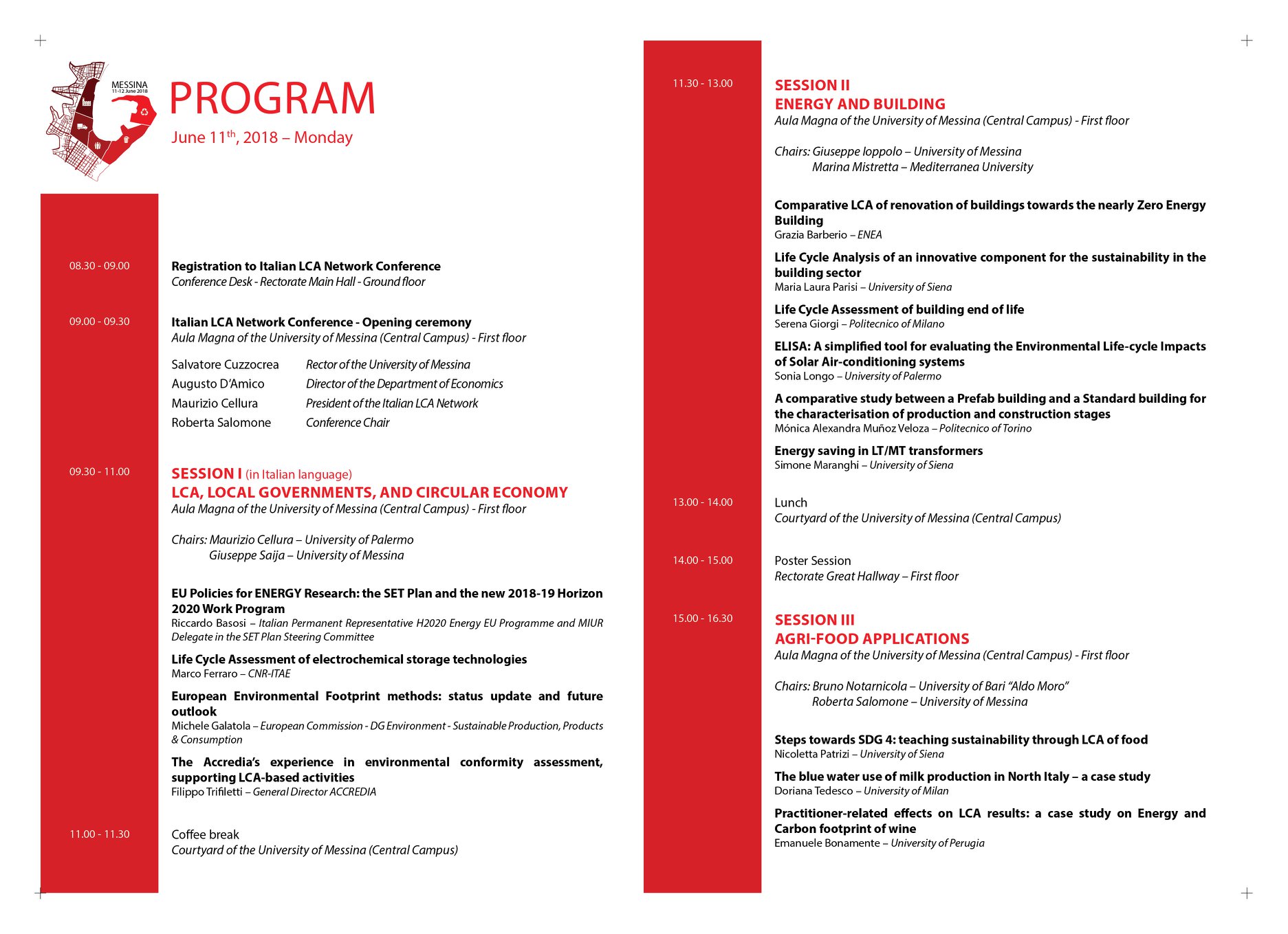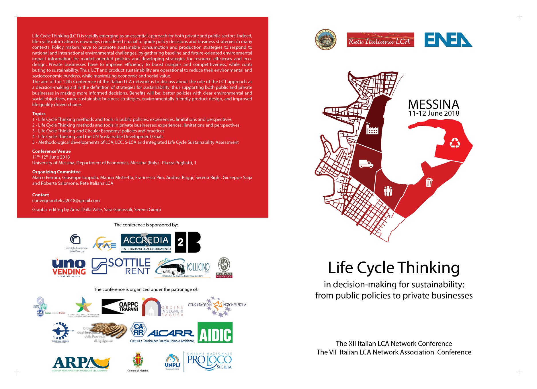 The Italian LCA Network organized the 12th Italian LCA Network Conference “Life Cycle Thinking in decision-making for sustainability: from public policies to private businesses” that was held in Messina on 11 and 12 June 2018.