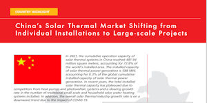 26 JUL 2023 China’s Solar Thermal Market Shifting from Individual Installations to Large-scale Projects In 2021, the cumulative operation capacity of solar thermal systems in China reached 481.94 million square meters, accounting for 72.8% of the world’s... read more