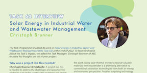 26 JUL 2023 Task 62 Interview with Christoph Brunner The SHC Programme finalized its work on Solar Energy in Industrial Water and Wastewater Management (SHC Task 62) at the end of 2022. To learn first-hand... read more